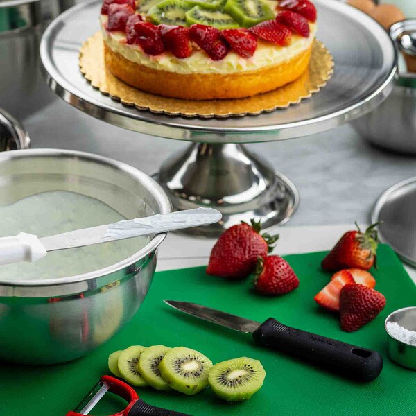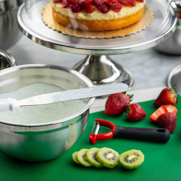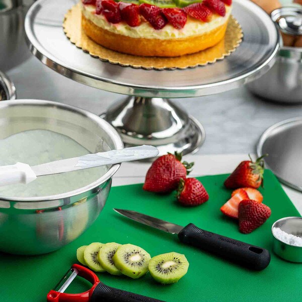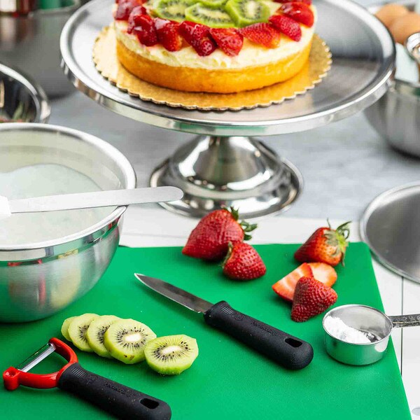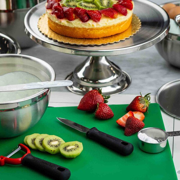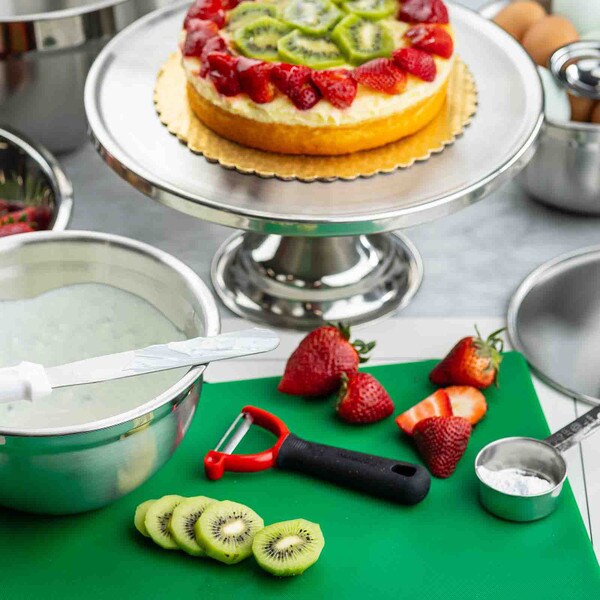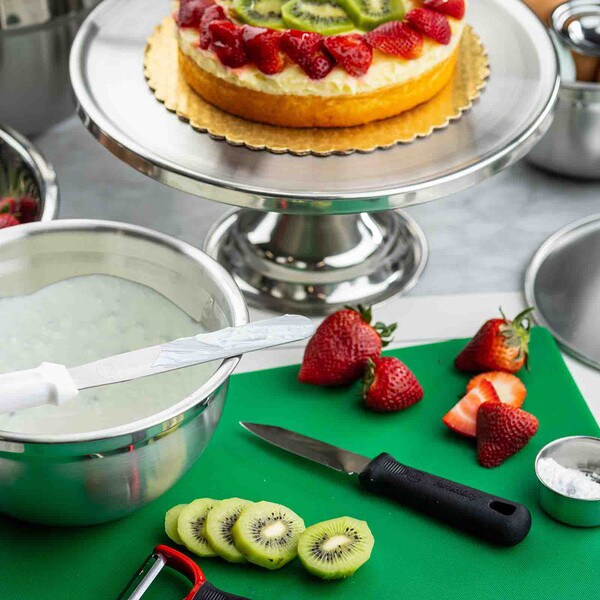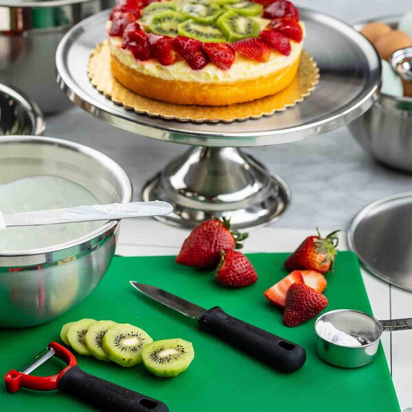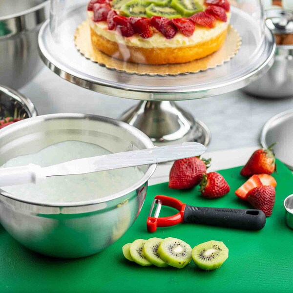 Show off the quality and freshness of your playfully decorated cakes, pies, cupcakes, and muffins with this attractive cake plate. The eye catching, non-revolving cake plate provides excellent product visibility. Set includes cake stand and cover.