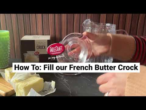 Store butter the traditional French way with this elegant glass butter crock. Featuring a clear glass design and embossed “Butter” label, it's as beautiful as it is functional. This countertop-friendly container keeps butter fresh and spreadable without refrigeration -- just add a bit of water to the base and pack butter into the lid (directions are on the box).