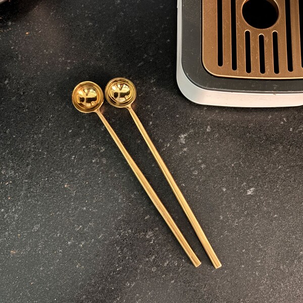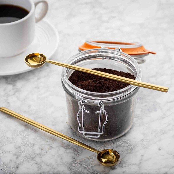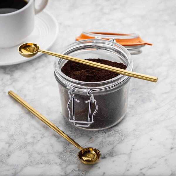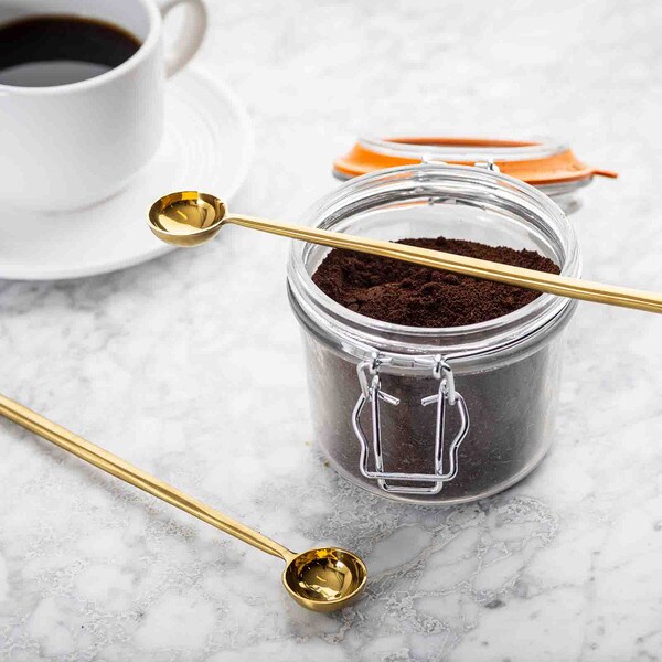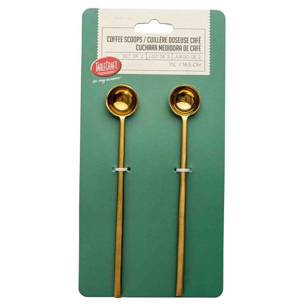 Elevate your coffee ritual with our Gold Coffee Scoop Set, featuring two sleek, long-handled spoons that bring style and function to every morning. Designed with a 1/2 tsp tsp capacity, these scoops are perfect for measuring grounds with precision -- and reaching deep into coffee bags or canisters with ease. Crafted in a radiant gold finish, they add a touch of luxury to your countertop or coffee station. Whether you're brewing a single cup or prepping a full pot, these scoops make it easy to measure in style.