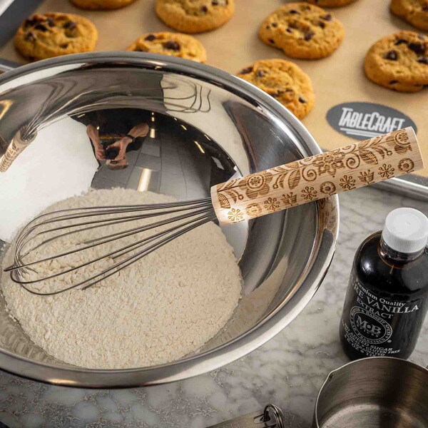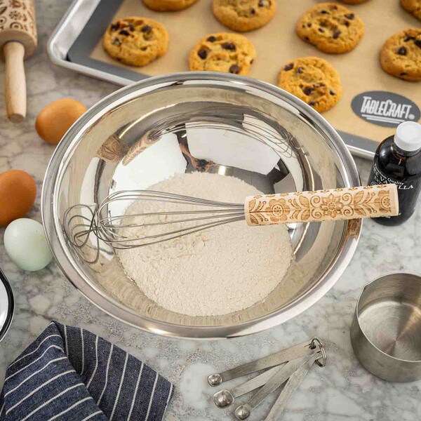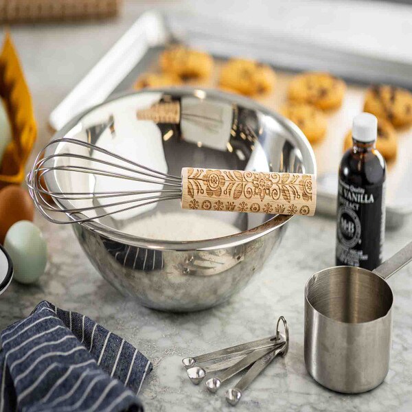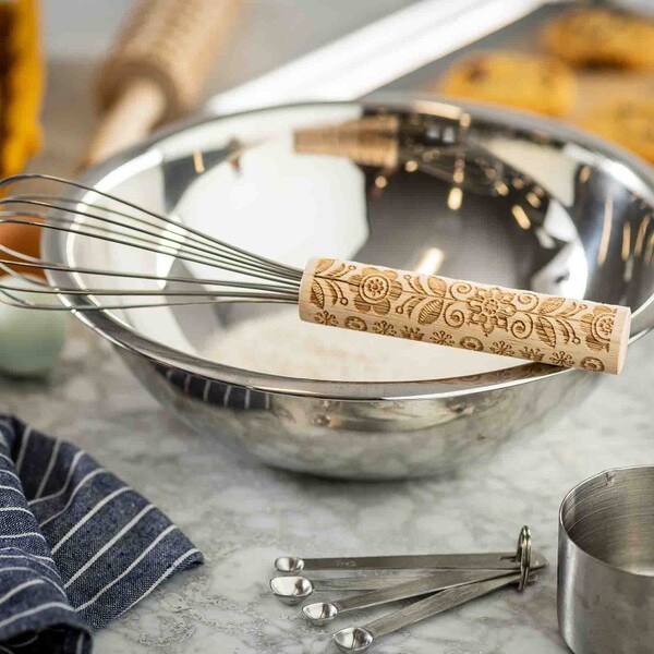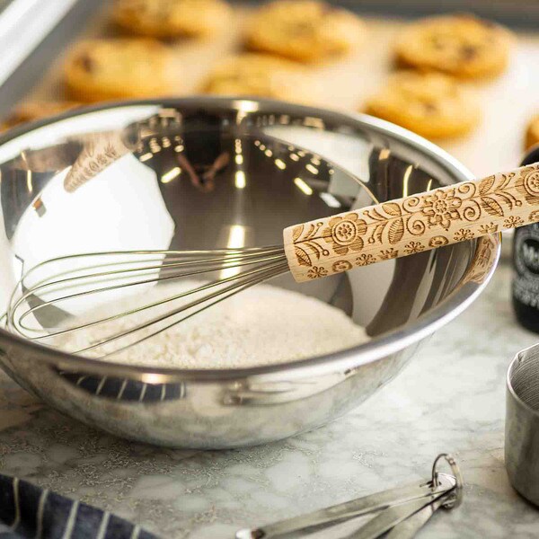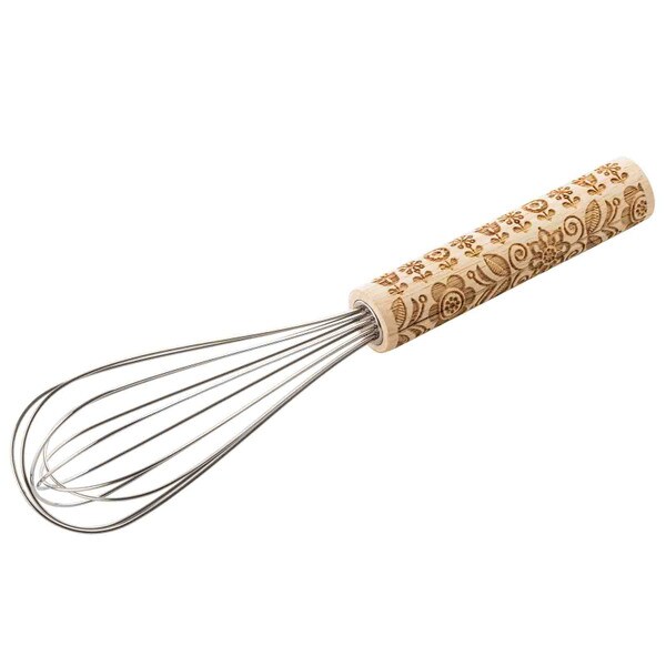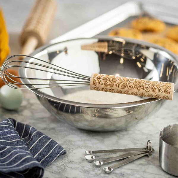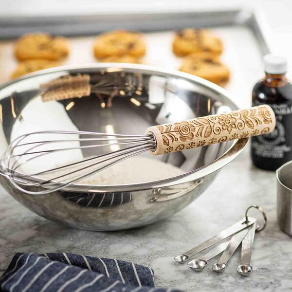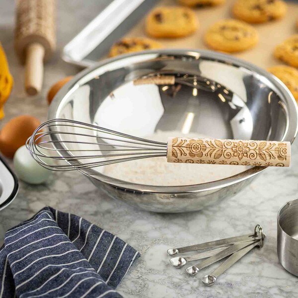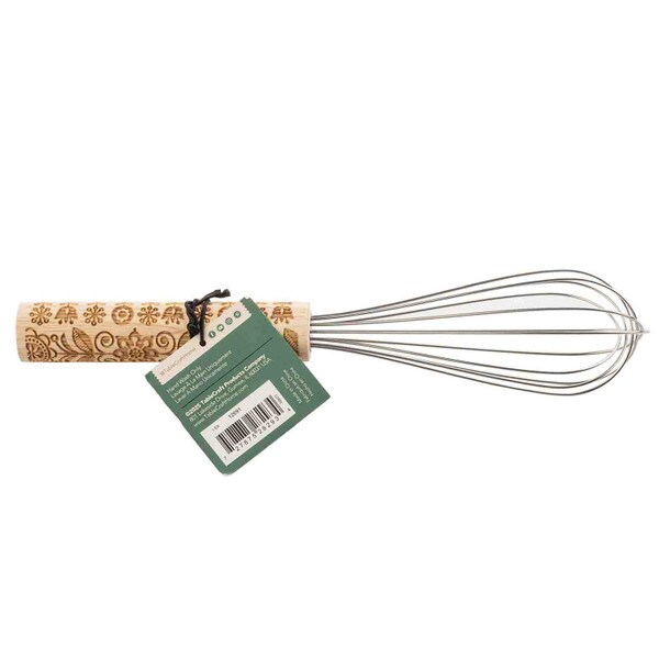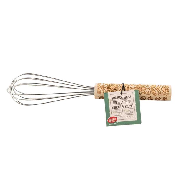 Add charm to your kitchen routine with our Embossed Whisk, featuring exclusive-to-TableCraft "Spring" engraved wood handles that bring warmth, texture, and personality to your prep work. Whether you're whipping eggs, blending batters, or mixing up homemade dressings, this whimsical whisk makes everyday cooking feel just a little more special. The durable stainless steel wires ensure smooth, efficient whisking, while the floral-patterned handle provides a comfortable, stylish grip. A thoughtful gift or delightful kitchen upgrade for any home cook.