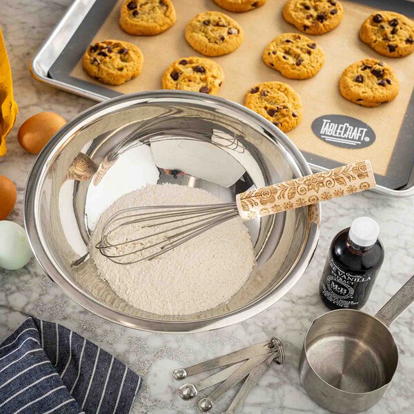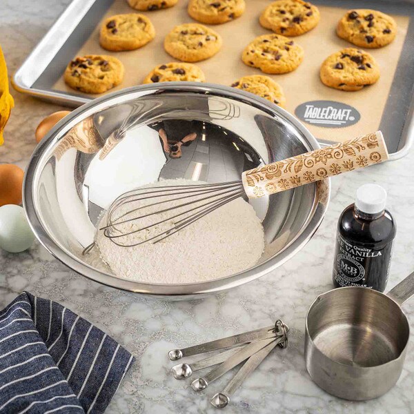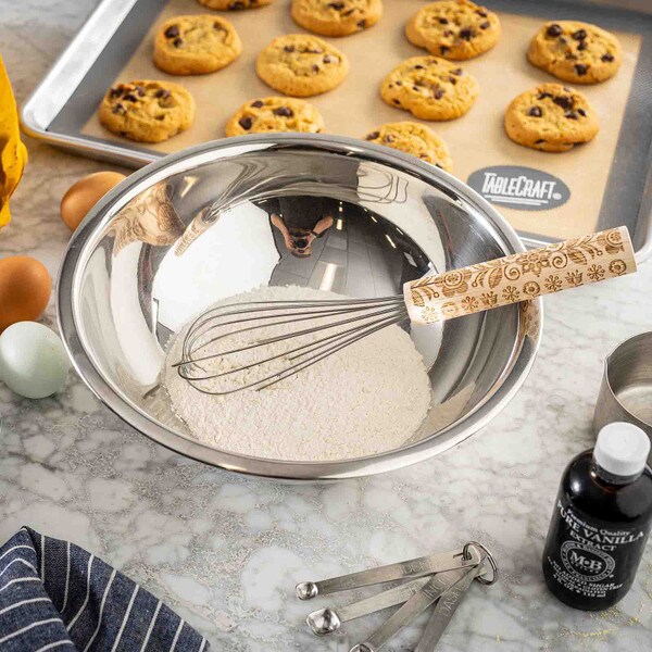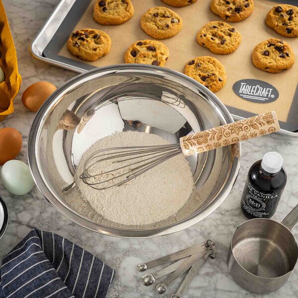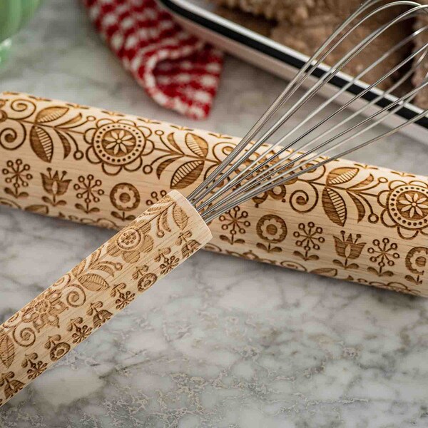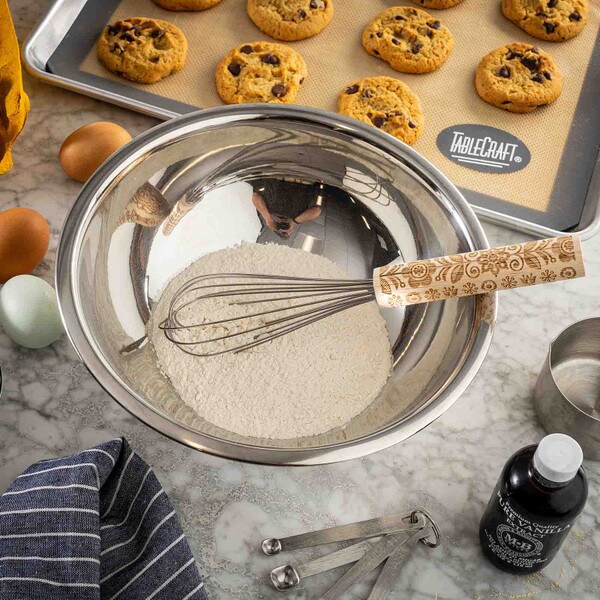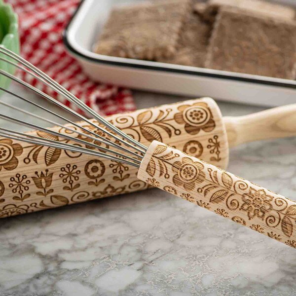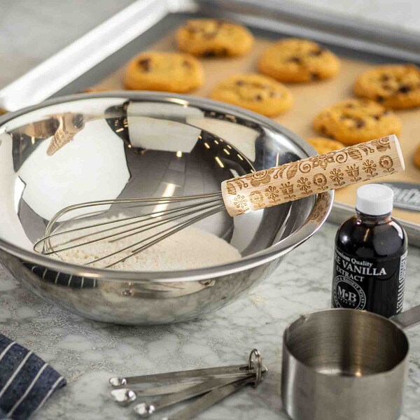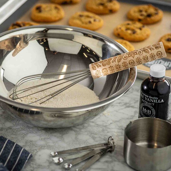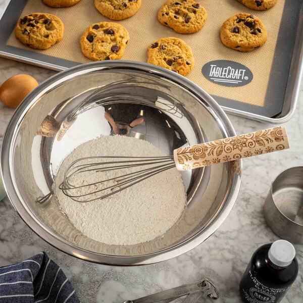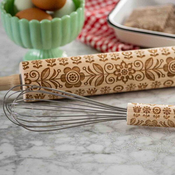 Add charm to your kitchen routine with our Embossed Whisk, featuring exclusive-to-TableCraft "Spring" engraved wood handles that bring warmth, texture, and personality to your prep work. Whether you're whipping eggs, blending batters, or mixing up homemade dressings, this whimsical whisk makes everyday cooking feel just a little more special. The durable stainless steel wires ensure smooth, efficient whisking, while the floral-patterned handle provides a comfortable, stylish grip. A thoughtful gift or delightful kitchen upgrade for any home cook.
