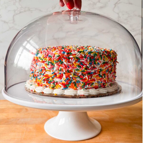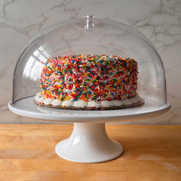 Add height and elegance to your dessert presentation with this durable, non-revolving melamine cake stand. Its white, high-gloss finish enhances product visibility and complements any décor --perfect for bakeries, cafes, or buffet spreads. Measuring 4" high and designed to hold up to an 11" diameter cake, it’s also ideal for showcasing pastries, plated dishes, or appetizers to add visual interest to your tabletop or serving station.